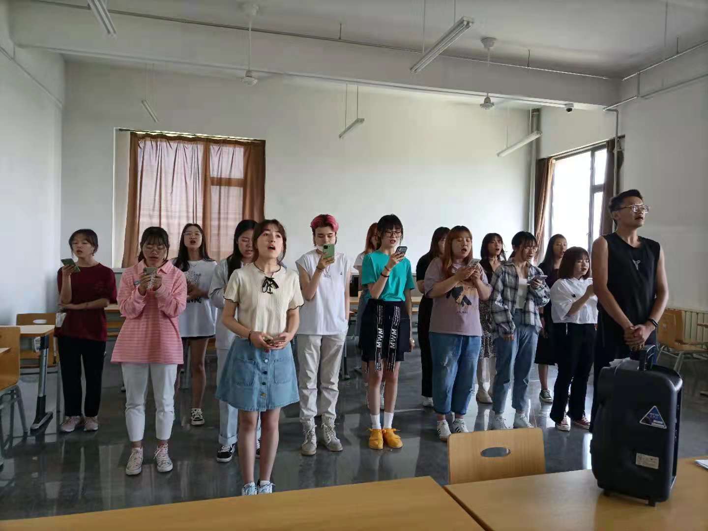 2021年5月25日中午,经贸管理学院书记石莹、副书记赵雪梅对即将参加学院“红心唱响新时代 昂首阔步新征程”庆祝中国共产党成立100周年群众性歌咏系列展演的20余名学生的训练情况进行了视察。对同学们的刻苦训练表示了慰问,并激励同学们用歌声唱出爱党爱国的真实情感,以优异成绩迎接中国共产党成立100周年。