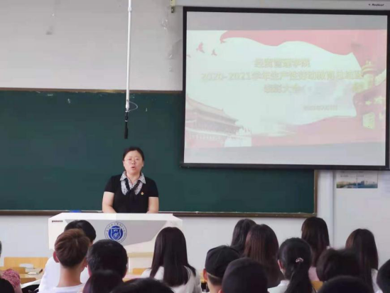 为全面贯彻落实《天津中德应用技术大学关于全面加强新时代劳动教育的实施方案》,积极构建学院德智体美劳全面培养的教育体系,大力推动劳动教育, 2021年7月2日下午,经贸管理学院师生在F3-423举办了2020-2021学年生产性劳动教育总结暨表彰大会,以进一步鼓励先进,激发全体学生的劳动热情。经贸管理学院党总支书记、院长石莹、党总支副书记赵雪梅、学工办全体辅导员以及经贸管理学院劳动教育标兵、劳动教育优秀班集体代表参加了此次表彰大会。表彰大会由李记永老师主持。