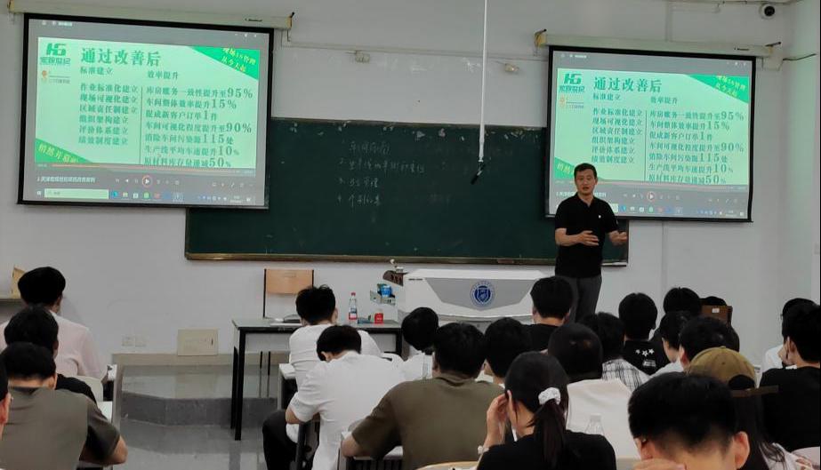 为贯彻落实应用型人才培养目标,提升学生精益生产实践能力与职业素养,经贸管理学院于2025年6月21日上午在F3-105教室成功举办工程师素养系列讲座之“精益改善案例”专题讲座。本次讲座特别邀请了远发日新科技副总经理张磊先生担任主讲嘉宾,经贸管理学院质量管理工程专业2022级在校生224余人参加了此次讲座。