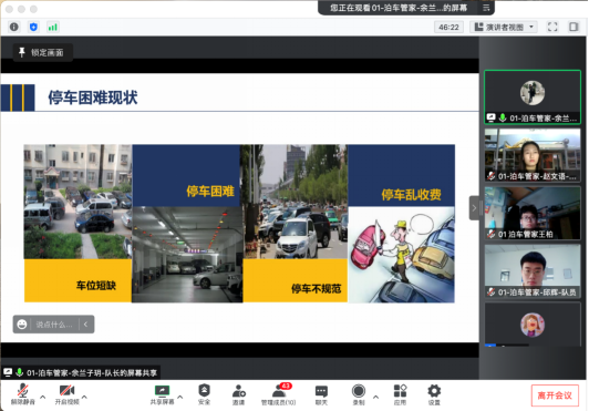 4月9日上午8:30,第十二届“三创赛”校级选拔赛正式开始,比赛流程由8分钟的团队展示和7分钟的评委提问组成。每支队伍都发挥特长,通过共享PPT、视频,打开摄像头展示实物模型等多种形式展示了自己队伍的作品。来自兄弟高校和校内的专家评委根据作品的创新性、创意水平以及可行性对作品进行打分。根据每组三位评委的共同打分进行加权平均,得到每支队伍的最后分数。