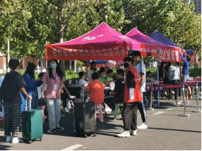 对于大部分迎新的志愿者而言,或许别人总是在聚光灯的照耀下,而自己留给他人的却是姗姗背影,但他们依旧无怨无悔地在迎新工作的一线忙碌着。